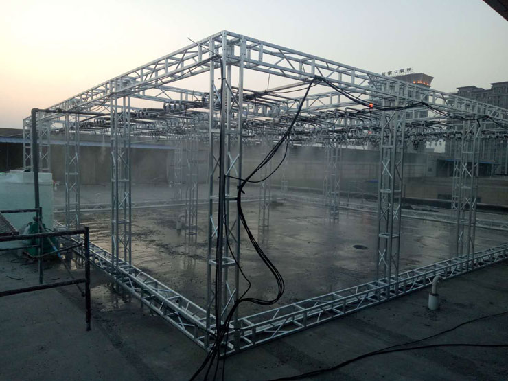 2、降雨模擬系統(tǒng)方案:是指在實(shí)驗區(qū)建成降雨區(qū),降雨區(qū)為了有效的保證達(dá)了下墊面的實(shí)驗得以完成,有效降雨面為10×10米,總100平米,降雨高度為6米。整個降雨可以達(dá)到模擬人工降雨的效果,